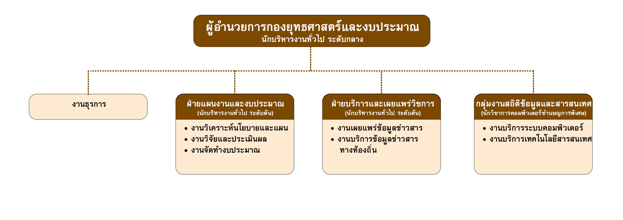 1.2 ฝ่ายแผนงานและงบประมาณ มีหน้าที่ควบคุมดูแลและรับผิดชอบการปฏิบัติงานในหน้าที่ของงานวิเคราะห์นโยบายและแผน งานวิจัยและประเมินผล และงานจัดทำงบประมาณ
